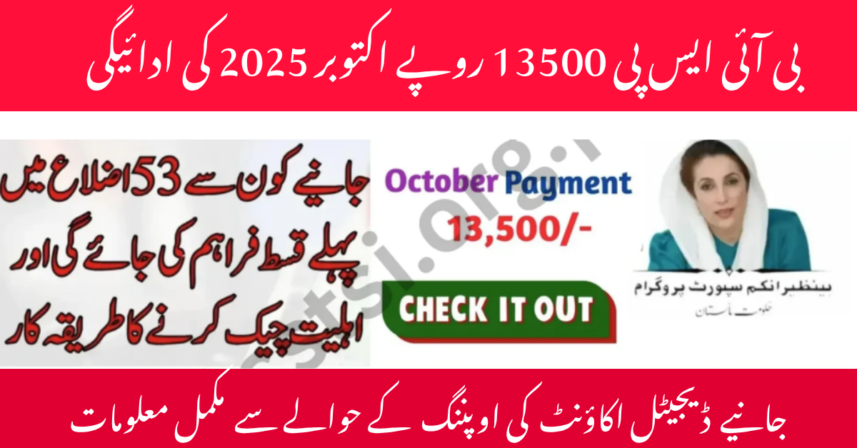 BISP 13500 Payment October 2025: Check 53 Districts List, Digital Account & Online Eligibility